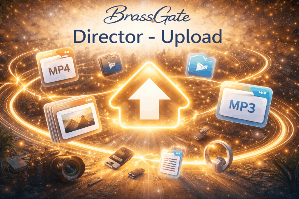 It’s where you bring videos, images, audio, and documents into BrassGate so they can be analysed, organised, and prepared for creative use. Once uploaded, assets become part of the system’s working memory — available to the Director, Video Studio, and creative tools without repeated handling or manual setup. This removes the friction between having files and being able to use them, allowing the rest of the workflow to focus on intent, structure, and output rather than file management.